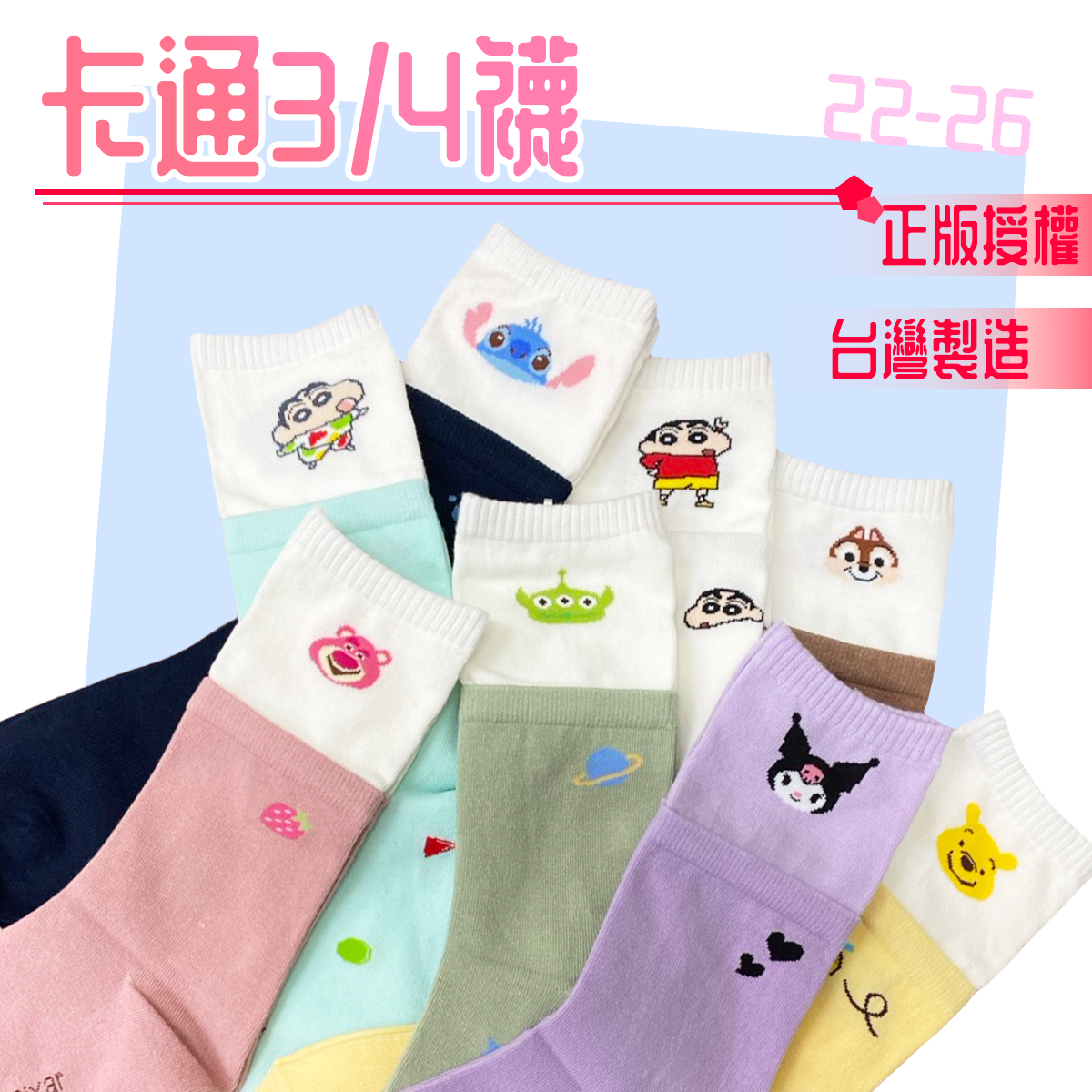 卡通3/4襪 正版授權